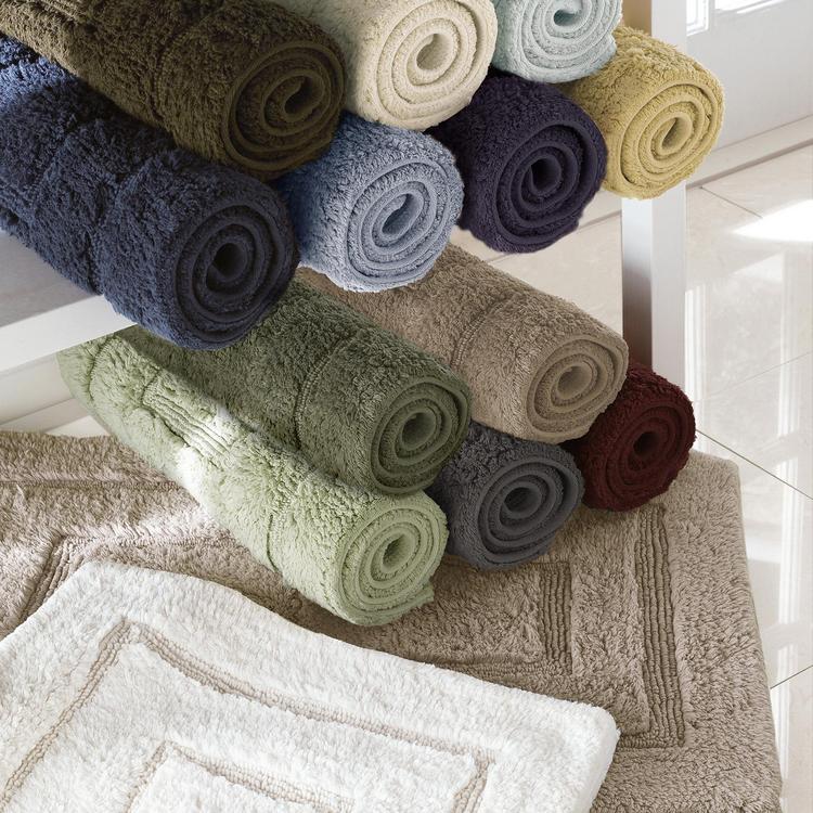 Indulge in lasting comfort with our soft and absorbent Kassadesign bath rugs. Made from luxurious cotton, these rugs feature a non-skid latex spray backing for added stability. Available in two sizes. Coordinating towels available.