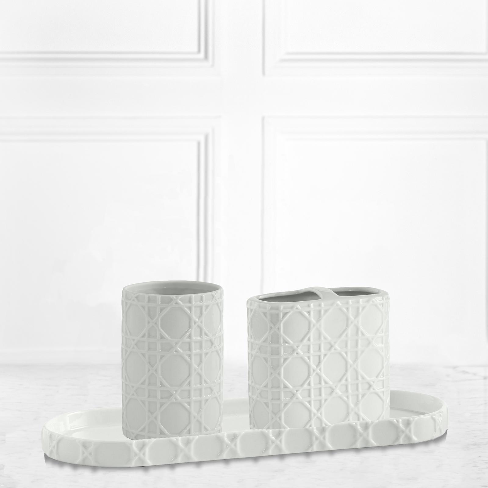 The Rattan bath accessory collection highlights the unique character of woven Rattan. Made from embossed porcelain, each piece undeniably intricate and lends itself to contemporay design.