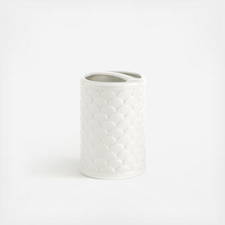 Featuring an embossed scale pattern, the Scala porcelain bathroom accessories bring subtle texture into any bath.