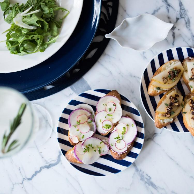 Shimmering white porcelain is decorated with delicate wide pearl stripes creating the kate spade new york Charlotte Street 4-Piece Tidbit Plate Set. The subtle stripes give this dinnerware accessory a sophisticated elegance. Perfect for every day, these stylish plates also make a wonderful gift.