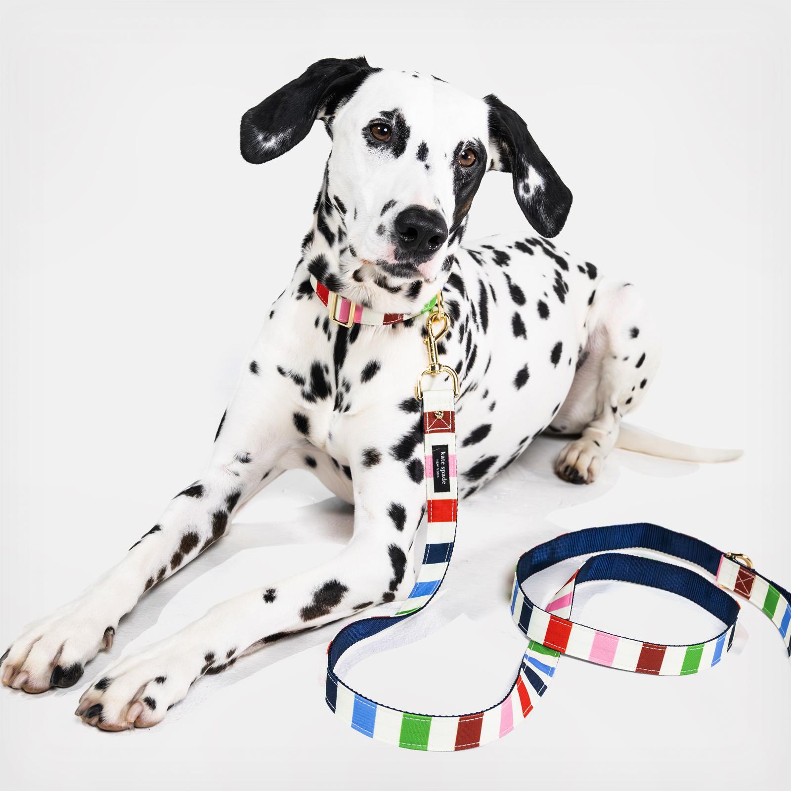Going out for a stroll with your furry friend? Take Kate Spade New York's leash - adorned with colorful stripes - with you.