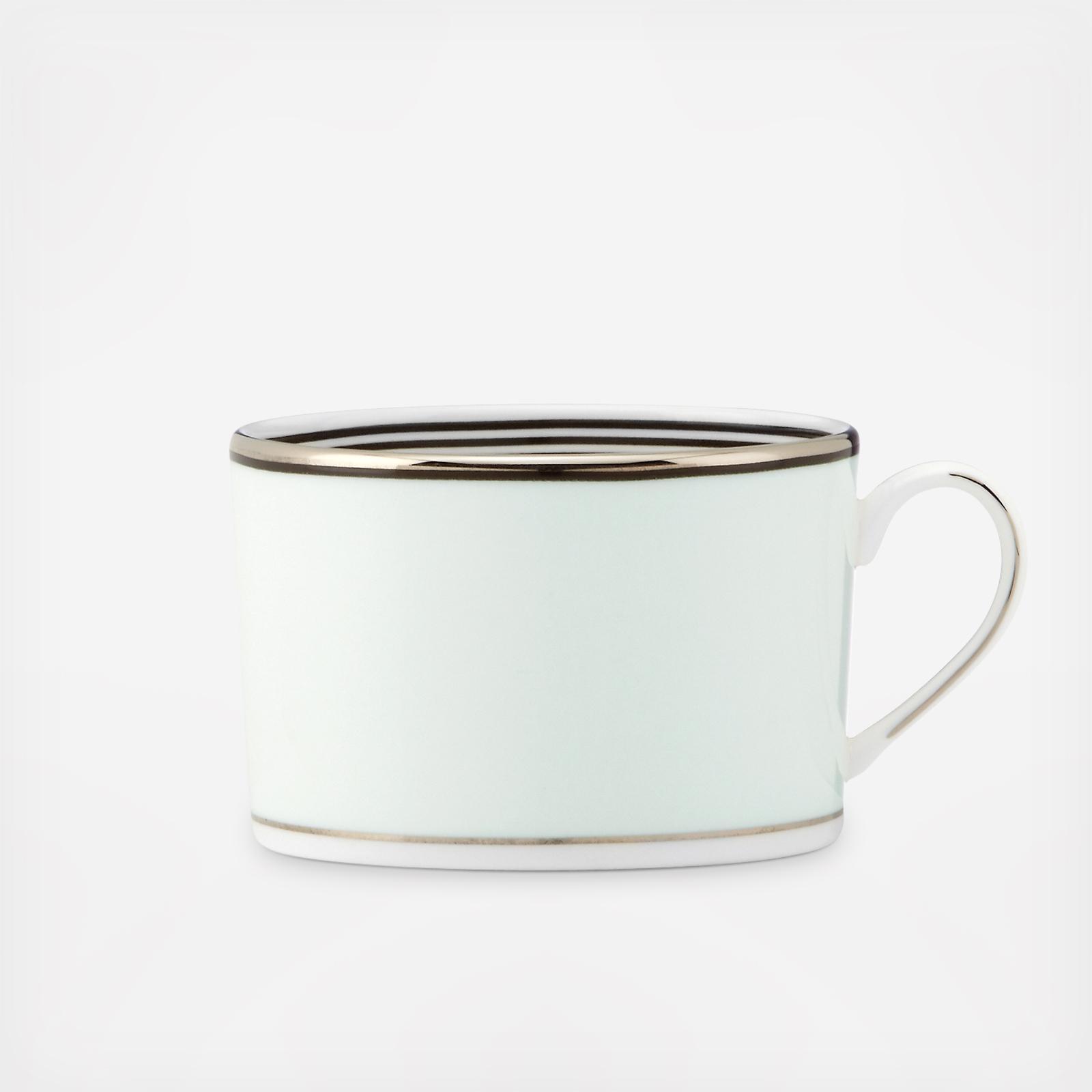 Both graphic and modern, the kate spade new york Parker Place Cup creates instant ambiance with rings of platinum and black trimming pale blue. Parker Place dinnerware is chic and elegant, perfect for any occasion.