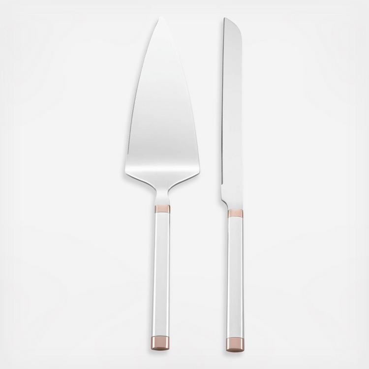 Present your favorite desserts with the kate spade new york Rosy Glow dessert set. Crafted of shimmering silver plate, the cake knife and server are each decorated with a glowing pink accent. Elegant and sleek, this lovely dessert set makes a wonderful gift.