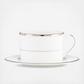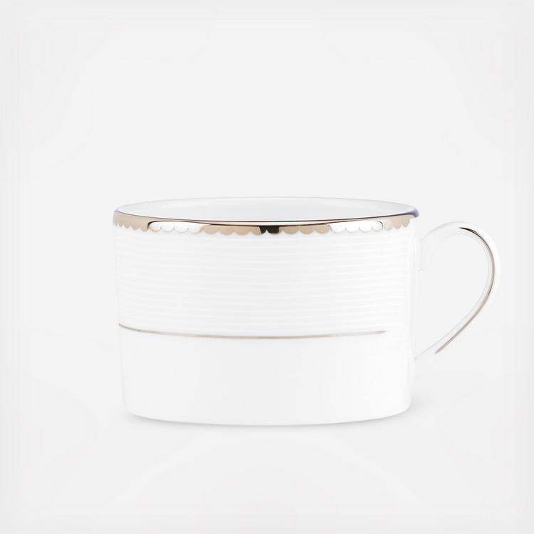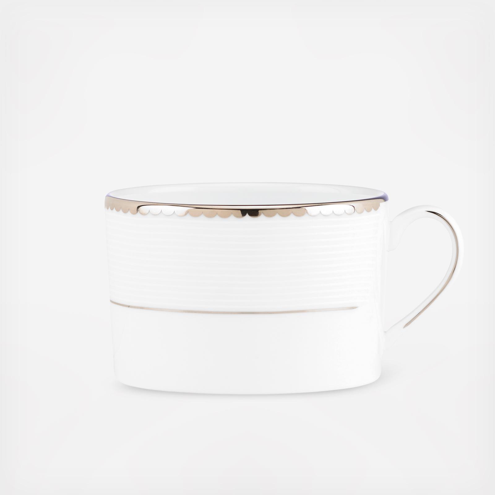 An elegant, contemporary style, kate spade new york Sugar Pointe Cup is a dinnerware classic. This cup features delicate rows of raised white stripes on white bone china, finished with a platinum scalloped edge.