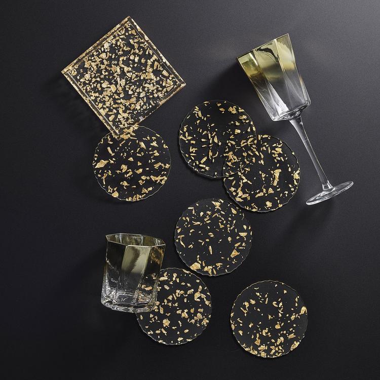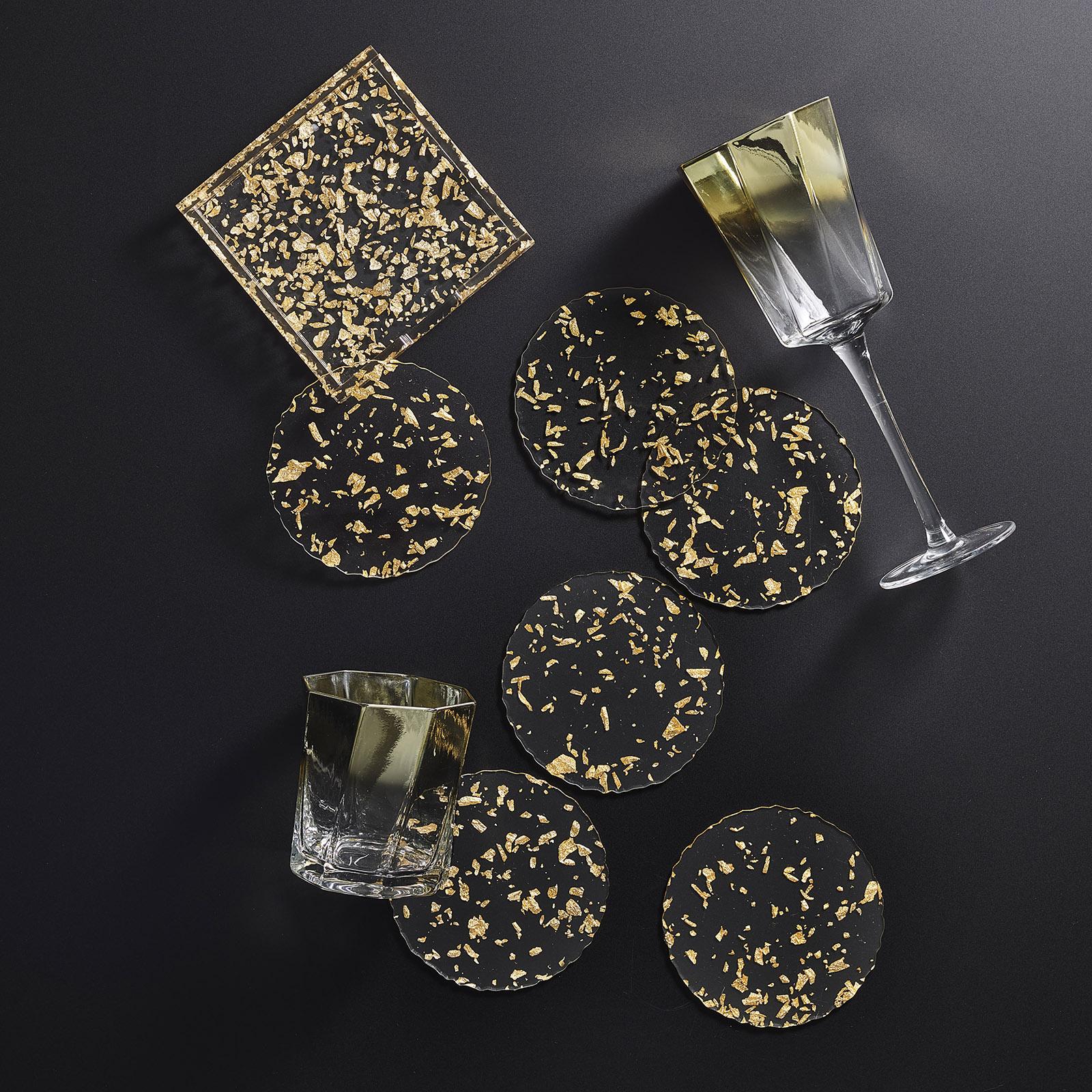 True to its name, the Stardust Collection imitates refractory dust grains emitted from cooling stars. Flecks of colors are spread by hand to create a unique pattern on the clear, acrylic Stardust Coasters. A wavy edge finishes the organic look of these coasters. Due to the hand-crafted nature of the poured acrylic, coasters may vary from one to another.
