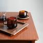 Like looking into an old photo, SEPIA evokes a sense of nostalgia and comfort. The square shaped handles of cups and the gently curving form of tumblers allow you a firm grip. The tray is elegant with thick handles made of solid wood, and there is coating on its surface that prevents items from slipping when serving. Items made of heat-resistant glass can be used for hot and cold drinks.