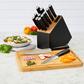 Enhance your kitchen with the KitchenAid 14-piece knife block set, complete with a built-in sharpener for easy maintenance. Crafted with precision, each knife features sleek black handles that offer a comfortable grip and a touch of sophistication. With its combination of functionality and elegance, this KitchenAid knife block set is a stylish addition to any kitchen. Keep your knives sharp and ready for use with the built-in sharpener, ensuring precision cutting every time. These KitchenAid knives are dishwasher safe on the top rack for convenient cleanup, though hand washing is recommended for extended longevity. Dry immediately for best results.