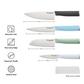 Upgrade your kitchen with the KitchenAid 4-piece Chef Knife Set, a collection of essential knives designed to enhance your cooking experience. This set includes four carefully crafted knives, each tailored for specific kitchen tasks. The 6-inch Chef Knife is versatile, making it ideal for slicing, dicing, chopping, and mincing various ingredients. The 5-inch Santoku Knife excels at precision tasks like fine slicing and dicing. The 5.5-inch Serrated Utility Knife effortlessly cuts through tough exteriors and soft interiors, such as tomatoes and bread. Lastly, the 3.5-inch Paring Knife is perfect for detail-oriented work like peeling, trimming, and removing fruit seeds. Crafted with precision, each knife features a blade expertly crafted from semi-polished, high-carbon imported Japanese steel. These blades are hardened and tempered to ensure a long-lasting, professional-quality edge for precise and consistent cuts every time you cook. The eastern-style ergonomic handles provide comfort and control, with a textured finish and chrome endcaps adding a touch of elegance. Additionally, each knife comes with a protective blade cover, ensuring safe storage and blade preservation.