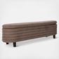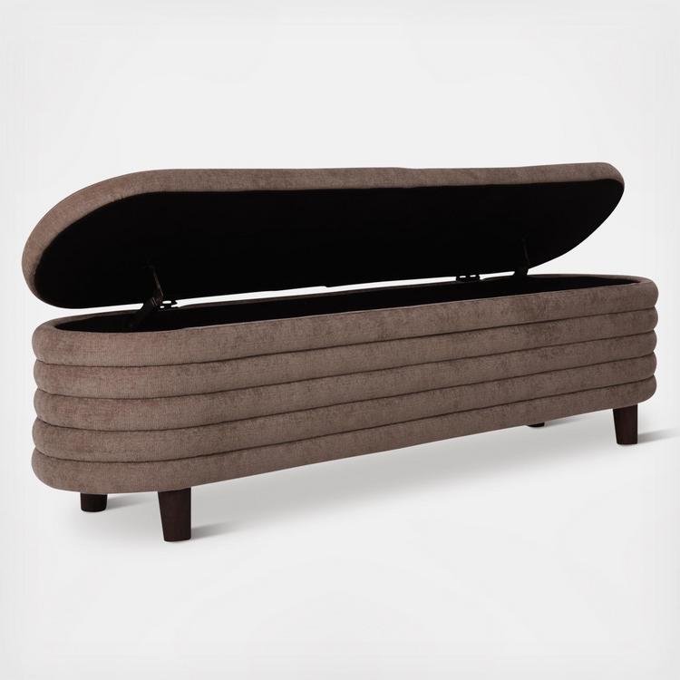 Deep channeling gives this bench an unexpected silhouette that catches the eye. Contemporary with a touch of glam, this piece features concealed storage and durable upholstery, making it ideal for a busy entryway, living room, or at the foot of a bed.