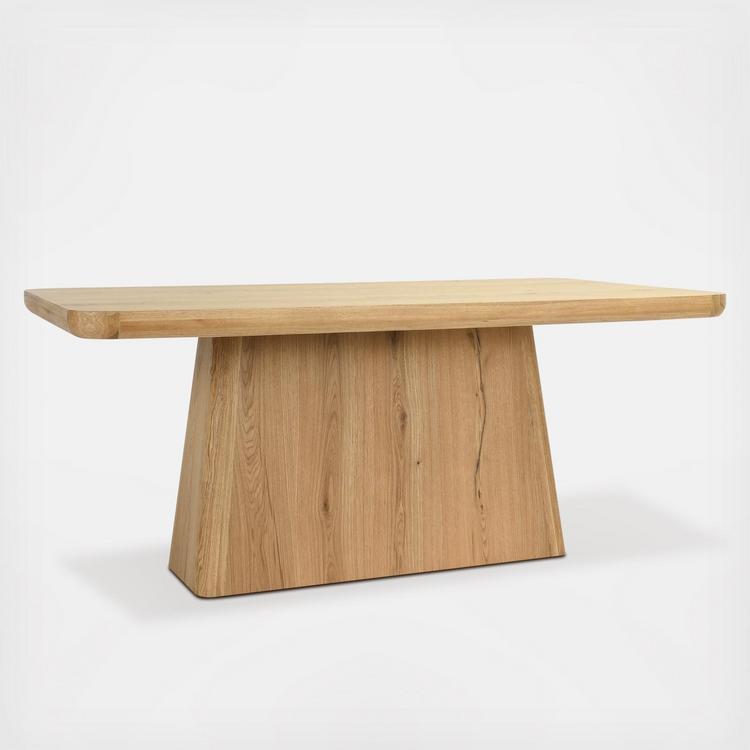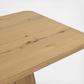 With its dynamic grain pattern and bold silhouette, this oak wood dining table adds a solid presence and lasting beauty to any room. The light finish and minimalist pedestal design preserves and showcases variations inherent in the wood. The handcrafted nature of our products creates unique pieces, each with their own characteristics and variations. We take pride in these artisanal features, as they are an essential part of brand's aesthetic.