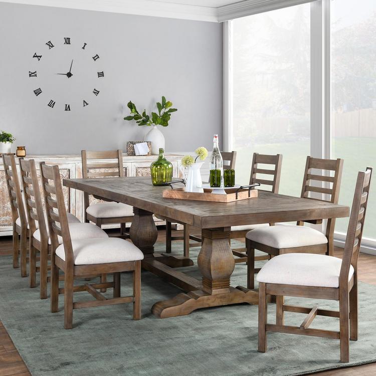 Reclaimed pine gives this dining table distinctive character while its classic design offers a timeless quality that suits any home. Ideal for a rustic, farmhouse, or even industrial space, this piece features an 18" extension leaf to enable you to host intimate dinners or large gatherings with ease. Pair with other pieces in the collection to create a cohesive look in your home.