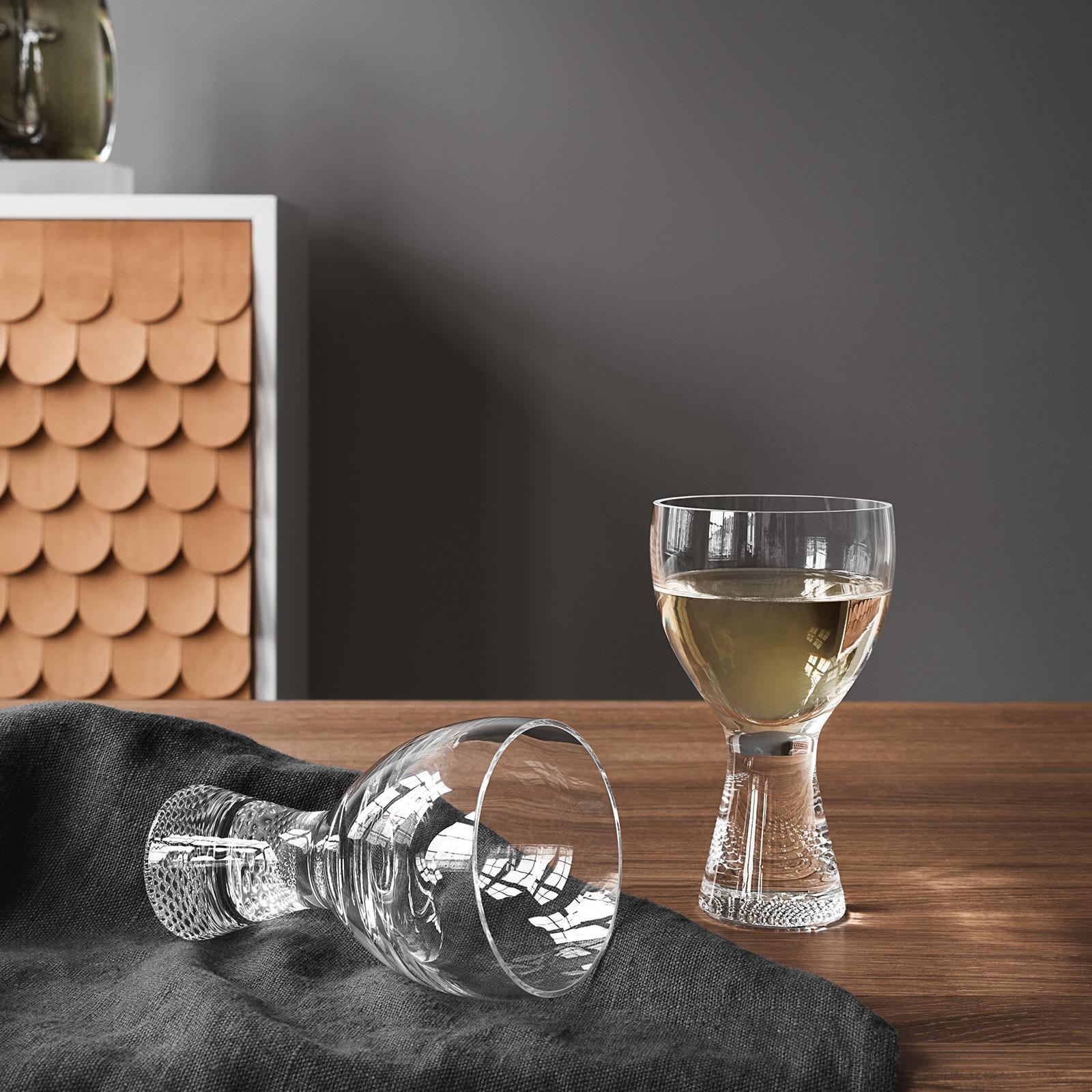 Like all the items in the Limelight collection, this glass has the distinctive, textured base that optically reflects light. The wine glass is great for white wines and it's even handmade. All the pieces in the collection are perfect for a beautifully set table any day of the week and Limelight makes life easy - everything is dishwasher safe. Design by Goran Warff.