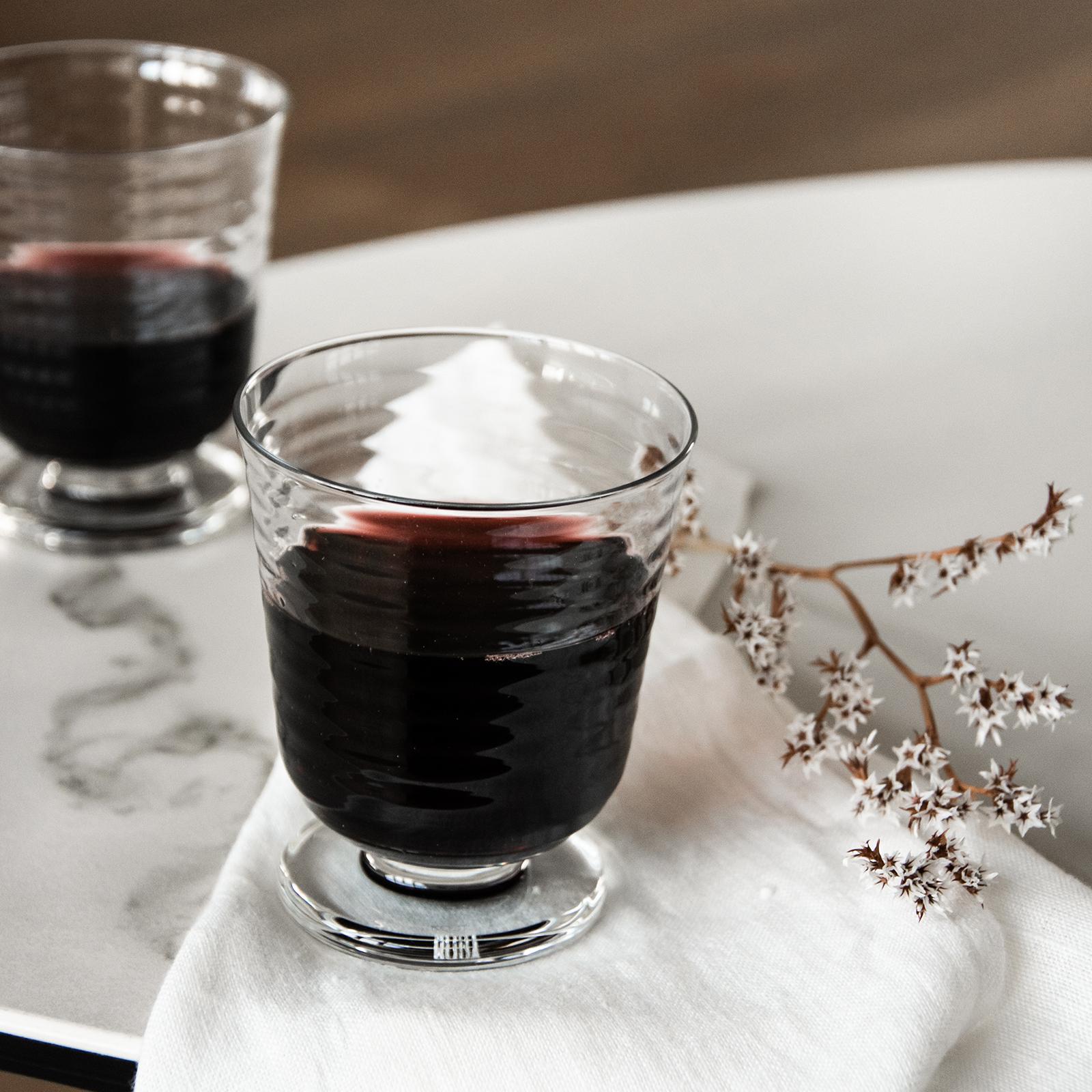 The glass in the Viva collection is - in this opinion - a water glass, but naturally, you can use it for whatever you like. Maybe juice? Multitasking at its best. Design by Matti Klenell.
