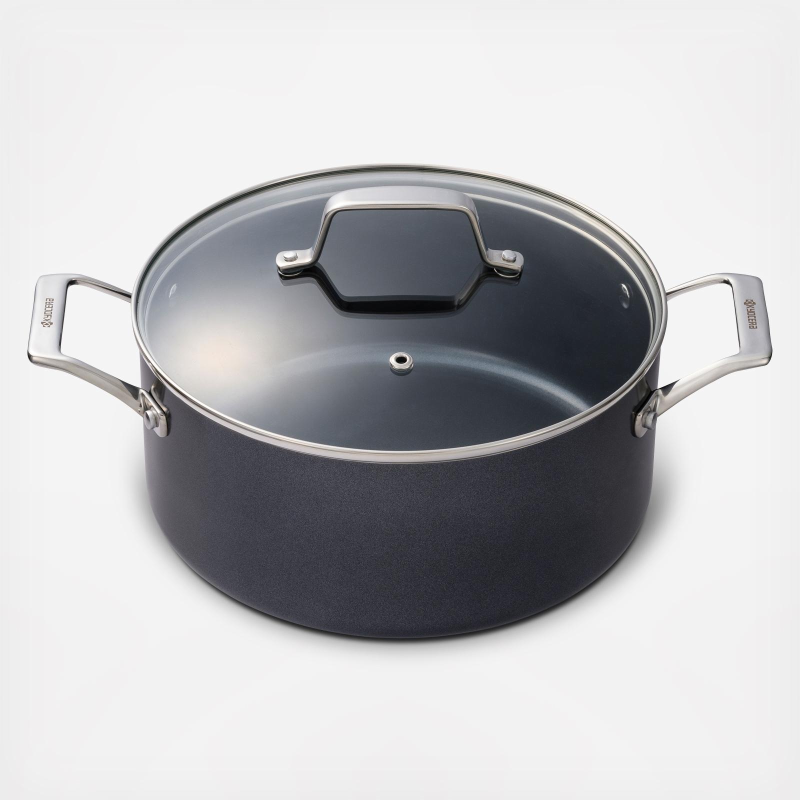 Kyocera ceramic-coated nonstick cookware is the healthier, more environmentally friendly choice for your kitchen. Free of PTFE, PFOA, lead, cadmium, fluorine, and heavy metals, this cookware is easy to clean, provides even heat distribution, and is compatible with all heat sources.