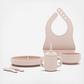 Starting solids? We’ve got you covered. The First Bites Full Kit includes everything you need to make mealtime easier (and a lot less messy). This set comes with a suction plate, suction bowl, two little spoons, a little cup, and one silicone bib—all made from non-toxic, BPA-free, food-grade silicone. Designed for tiny hands and big milestones, every piece helps keep food where it belongs while making self-feeding simple and fun. And when the meal is over? Just toss everything in the dishwasher for easy cleanup.
