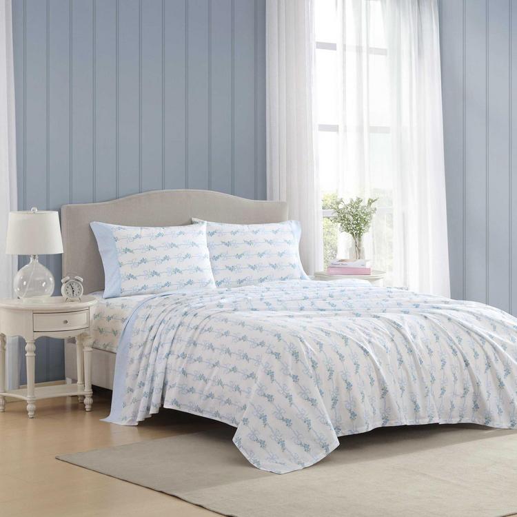 Enjoy crisp comfort and timeless elegance with Laura Ashley's percale sheet sets. Crafted from 100% cotton percale, these sheets offer a cool, breathable feel with a smooth, lightweight texture perfect for year-round use. The durable fabric ensures long-lasting softness, while the delicate printed hem detail adds a refined touch to your bedding. Deep pockets on the fitted sheet provide a secure fit, and the high-quality construction offers durability and everyday luxury.