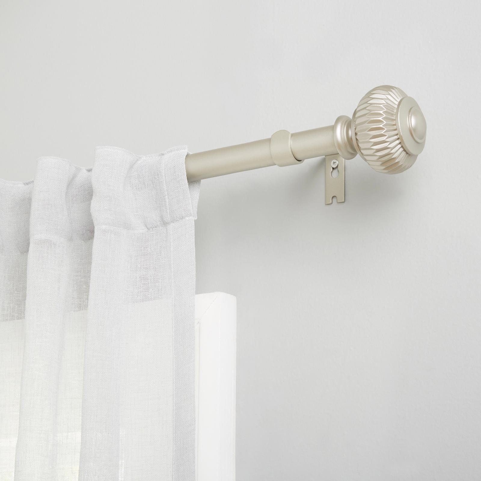 The Cayson Window Curtain Rod and Finial Set offers refined, modern style for your windows. The adjustable rod has a finish and accommodates most window sizes. This durable rod will support most curtain panels, from airy sheers to heavier blackout curtain panels with various tops. The faceted cylindrical finials will keep your window curtain panels secure on the rod while providing the perfect finishing accent for your decor.