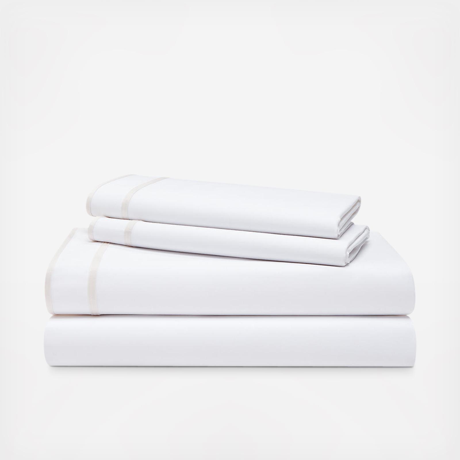 A signature pajama-stripe border defines the tailored, modern look of the Lauren Home Spencer Border sheet set. Smooth to the touch, and supremely soft, it is made from 300-thread-count cotton sateen.