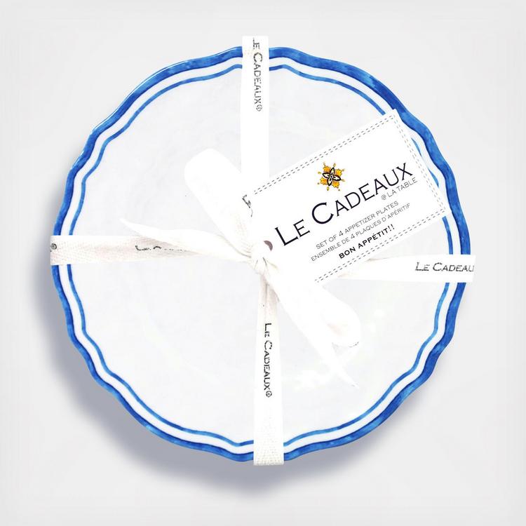 With their exceptional weight and luxurious textured surface treatment these set of 4 appetizer plates have the appearance of real ceramic. Art for your table without the concern of breakage.