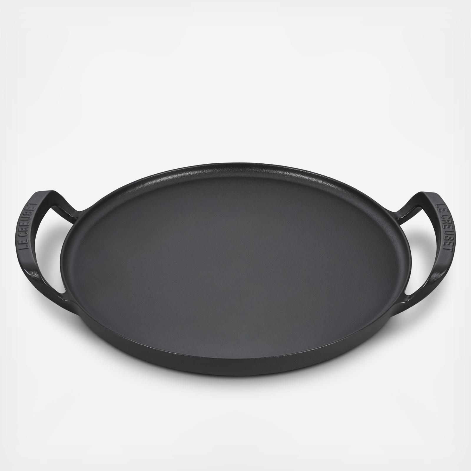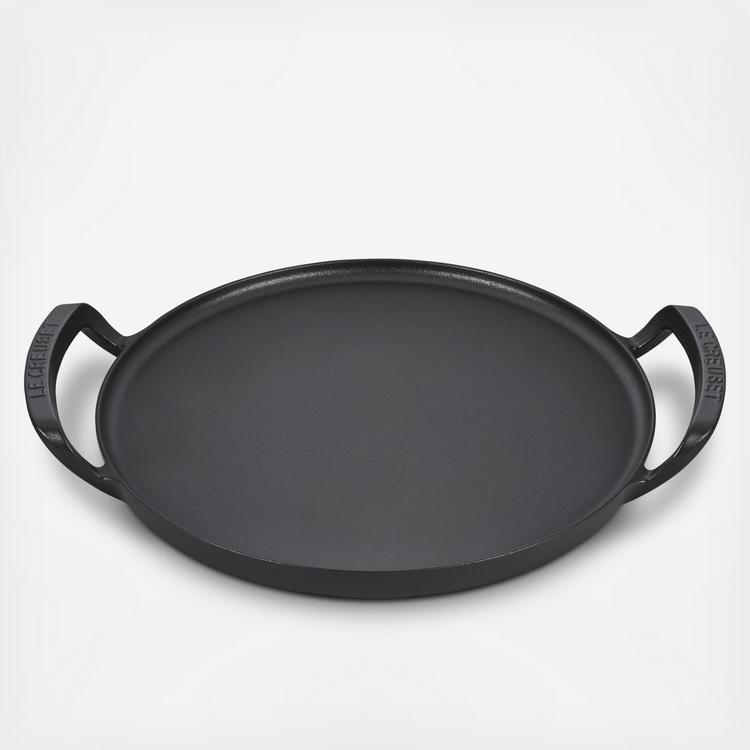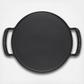 Go beyond the kitchen with the Alpine Outdoor Pizza Pan. It's ideal for baking, roasting, searing and griddling outdoors. Specifically designed for cooking over an open flame, the pizza pan is completely encased in a rugged matte black enamel that is ready to use and requires no seasoning. It’s perfectly sized to accommodate a large pizza, with superior heat distribution for a crispy crust. The raised loop handles and low sides make it easy to maneuver on the grates, yet with a low-profile design that allows grill hoods to close. Durable and easy to clean, the Alpine Outdoor Pizza Pan is ideal for not only pizza and bread, but for seared burgers, pancakes, fried eggs, toasted sandwiches and more.