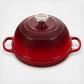The Bread Oven takes home baking to the next level of delicious and beautiful. Crafted from the legendary cast iron for superior heat distribution, this purpose-built shape with its domed lid traps and circulates steam to create bakery-quality results. The interior enamel is easy to clean, while the low-profile base promotes even browning and produces a golden, crispy crust marked with the hallmark three rings.