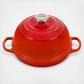 The Bread Oven takes home baking to the next level of delicious and beautiful. Crafted from the legendary cast iron for superior heat distribution, this purpose-built shape with its domed lid traps and circulates steam to create bakery-quality results. The interior enamel is easy to clean, while the low-profile base promotes even browning and produces a golden, crispy crust marked with the hallmark three rings.