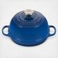 The Bread Oven takes home baking to the next level of delicious and beautiful. Crafted from the legendary cast iron for superior heat distribution, this purpose-built shape with its domed lid traps and circulates steam to create bakery-quality results. The interior enamel is easy to clean, while the low-profile base promotes even browning and produces a golden, crispy crust marked with the hallmark three rings.
