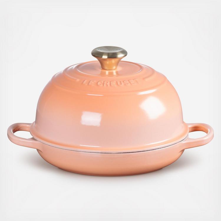 The Bread Oven takes home baking to the next level of delicious and beautiful. Crafted from the legendary cast iron for superior heat distribution, this purpose-built shape with its domed lid traps and circulates steam to create bakery-quality results. The interior enamel is easy to clean, while the low-profile base promotes even browning and produces a golden, crispy crust marked with the hallmark three rings.