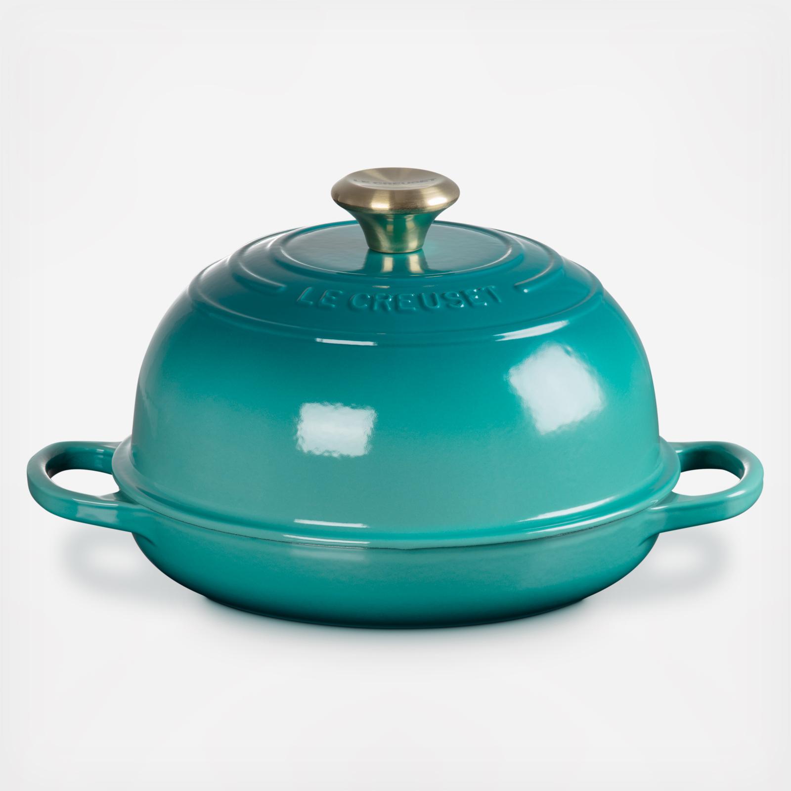 The Bread Oven takes home baking to the next level of delicious and beautiful. Crafted from the legendary cast iron for superior heat distribution, this purpose-built shape with its domed lid traps and circulates steam to create bakery-quality results. The interior enamel is easy to clean, while the low-profile base promotes even browning and produces a golden, crispy crust marked with the hallmark three rings.