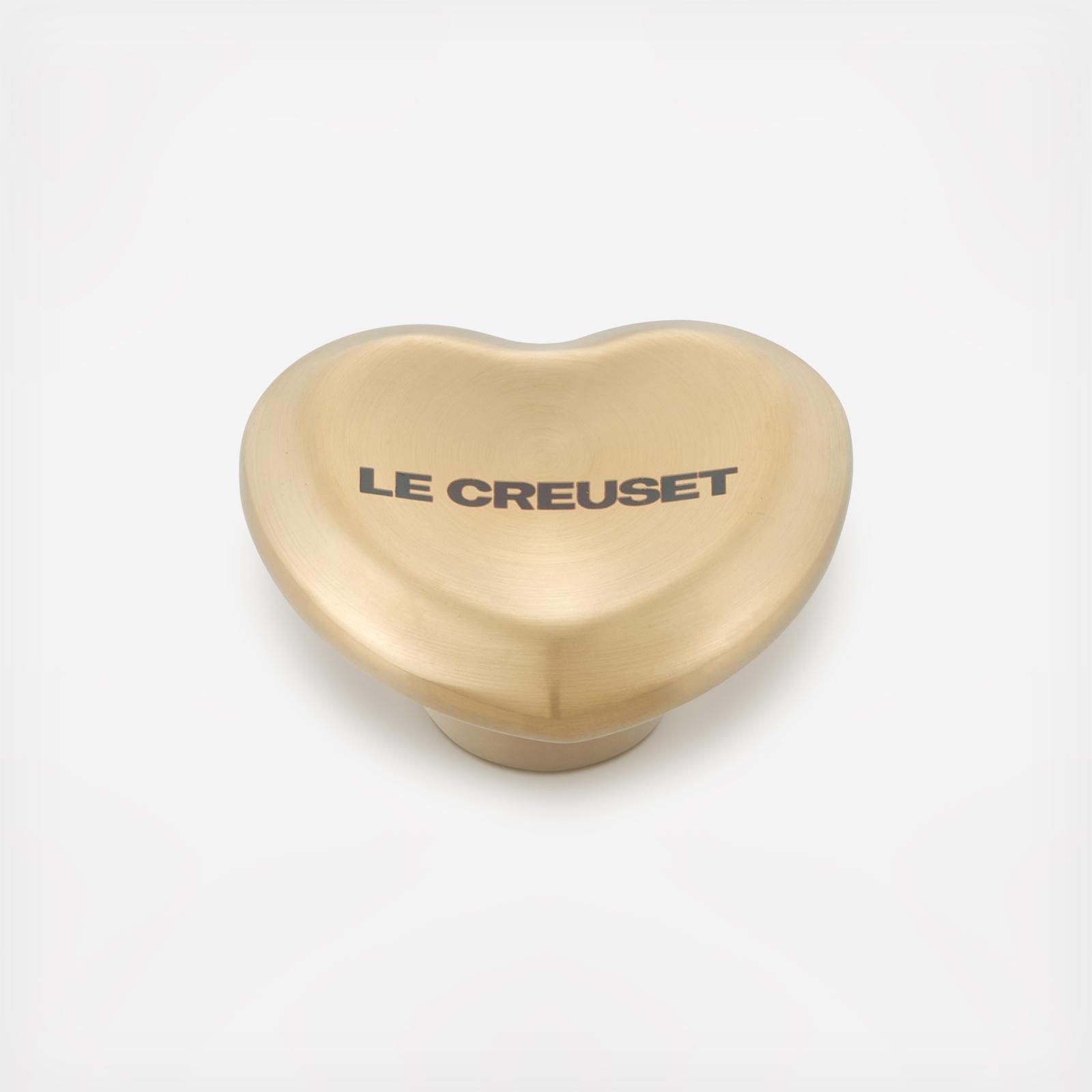 Personalize your Le Creuset cookware with the Figural Heart Knob to bring both beauty and function to your kitchen. With an elegant light gold finish, the heart knob is a lovely addition to your kitchen year-round and is oven-safe up to 500°F.