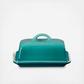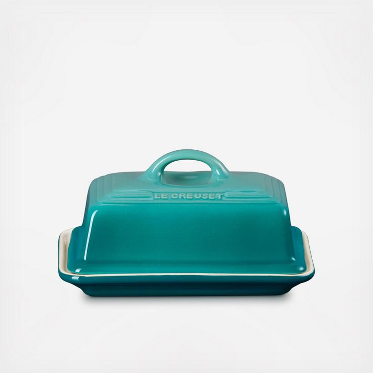 Decorative yet functional, this stoneware butter dish can go from refrigerator to microwave to table. The European style is designed to hold two sticks of butter.