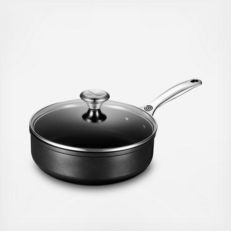 Excelling in versatility, the nonstick saute pan’s extra depth and generous cooking surface allow for sauteing, simmering, braising and one-pan meals.