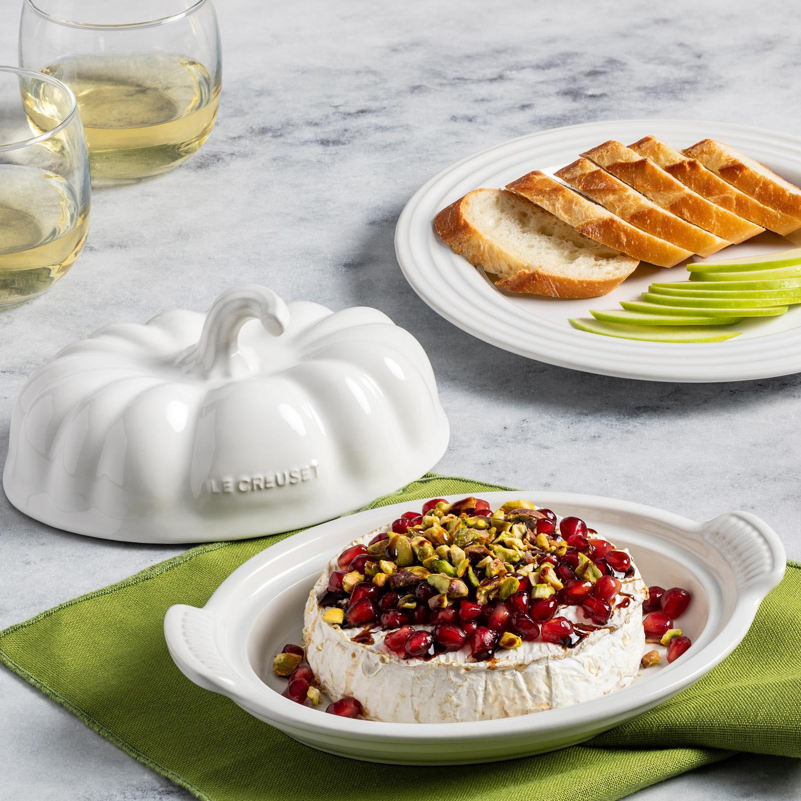 With a delightful fairy tale design, the Pumpkin Figural Covered Dish is a charming seasonal addition to the kitchen and table. Not only for sticks of butter, it’s also perfectly sized for baking cheese and appetizers, serving individual gratins and side dishes, and even for desserts like mousse and pot de creme. The charming stoneware lid with twirled knob locks in moisture and heat while baking, and keeps butter at the perfect temperature for serving. Crafted from the finest quality stoneware, the Pumpkin Butter Dish is finished with a vibrant glaze inspired by the brilliant colors of autumn which is easy to clean, dishwasher-safe, and resistant to chips, scratches and stains.