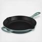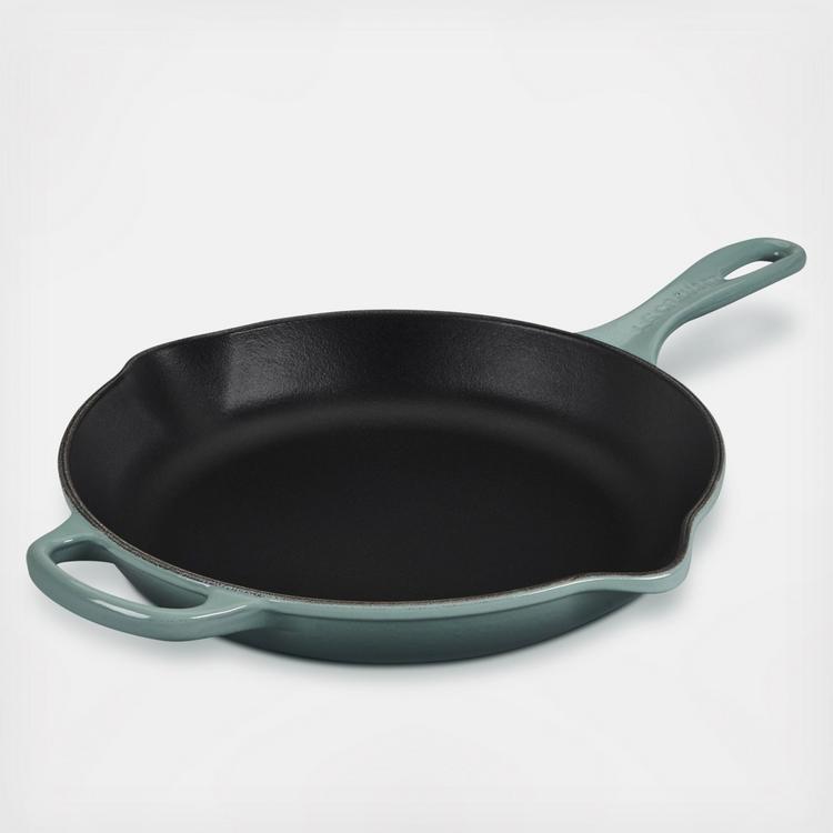 These new Signature skillets feature a helper handle for easier lifting and added control when moving between stovetop, oven, and table. Cast iron skillets have long been treasured kitchen staples for stovetop sautéing and oven baking alike. Over time, the matte black interior enamel develops a natural patina that is ideal for searing and frying. The large surface area means cooking large batches, evenly, is a cinch. Pour spouts on two sides allow for drip-free pouring, too.