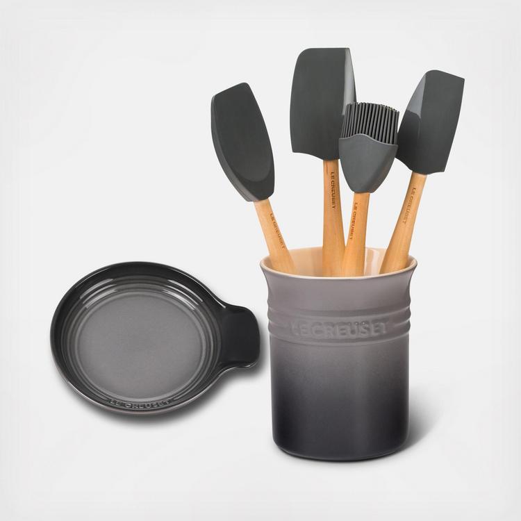 Stir, scoop, spread, or scrape—the Craft Series utensils are made for everyday use and long-lasting durability. This set of silicone utensils is the full assortment of the Craft Series range. It’s perfect for outfitting a new kitchen or complementing a Le Creuset collection. A stoneware crock keeps tools organized and a matching stoneware spoon rest tops off this perfect countertop set.
