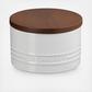 Care Instructions: Canister is safe for dishwasher and metal utensils, wood lid is hand wash only.