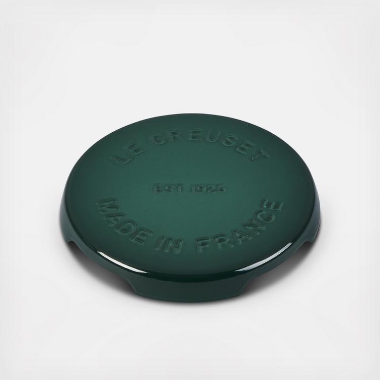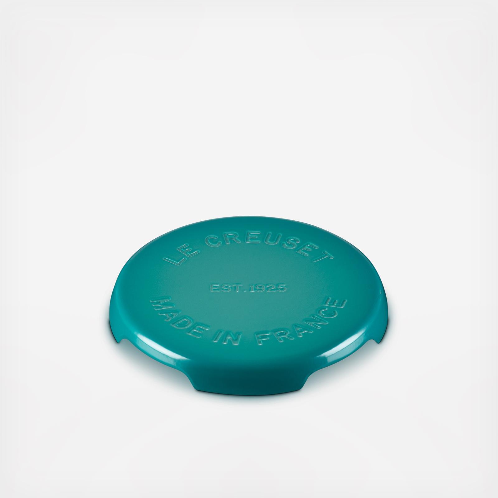 Crafted from the same legendary enameled cast iron and vibrant colors as Le Creuset cookware, the Round Signature Trivet protects surfaces from heat and condensation. The clever footed design elevates hot dishes, platters and cookware above counters and tables, while also allowing air to circulate underneath. Silicone pads on the feet provide a stable base and help protect surfaces.