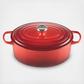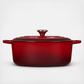 The iconic Le Creuset Dutch oven is indispensable in the kitchens of home cooks and professional chefs alike. Expertly crafted from enameled cast iron, the everyday versatility of the Dutch oven makes it ideal for everything from slow-cooking and braising to roasting, baking, frying and more. The oval shape is particularly suited for larger cuts of meat, whole chickens and for baking oval-shaped loaves of bread. Individually crafted by French artisans from the finest quality materials since 1925, the Le Creuset Dutch oven is beloved for its perfected design and exceptional heat retention that locks in moisture and flavor to produce superior results from stove to oven to table. Designed for generations of durability, the easy-to-clean vibrant porcelain enamel requires no seasoning, minimizes sticking and is dishwasher-safe.
