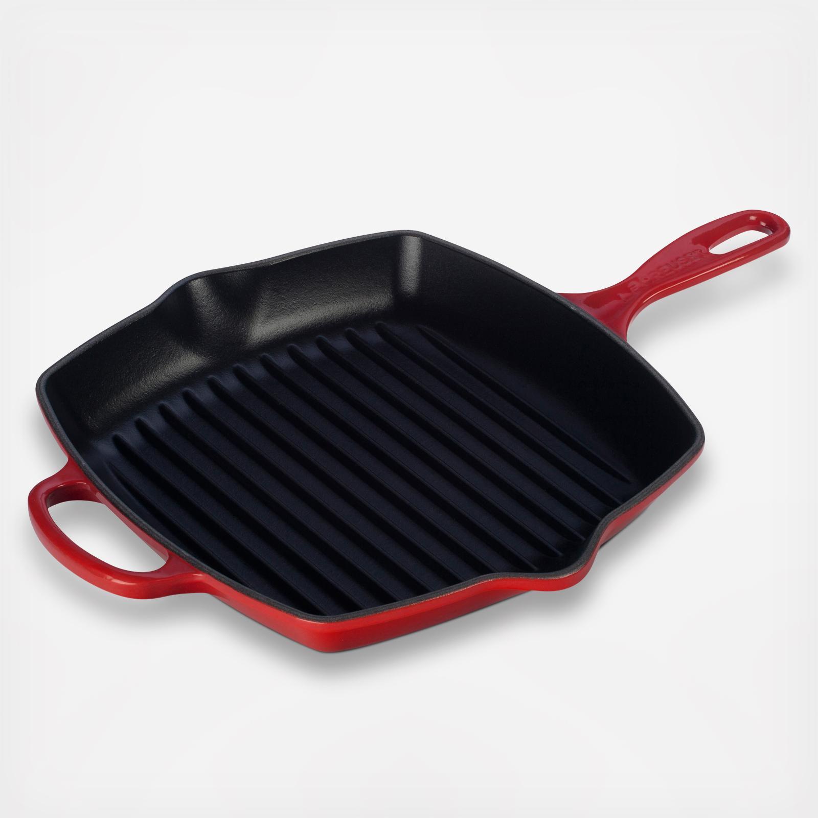 From savory vegetables to mouthwatering steak, chicken, and shrimp, this Square Skillet Grill by these gives food all the delicious flavor of an outdoor grill, then presents it beautifully at the table. High ridges allow excess fat and grease to drain, and spouts on two sides allow for drip-free pours. The square skillet grill's interior is coated with protective satin-black finish to prevent damage and wear. Over time, the slightly abrasive interior develops a natural patina that makes it ideal for searing and frying.