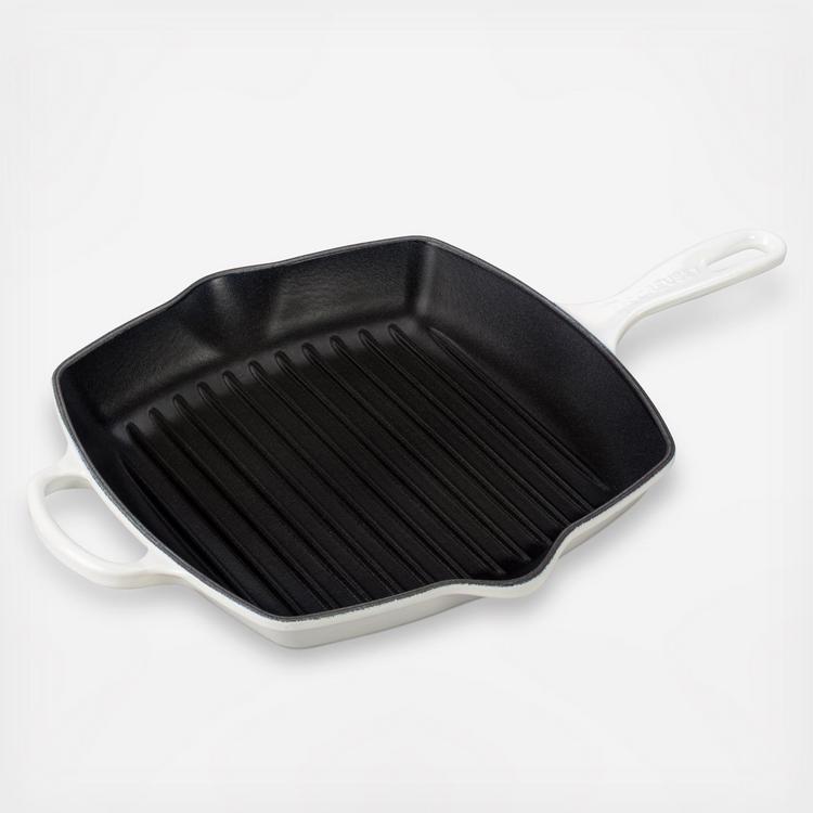 From savory vegetables to mouthwatering steak, chicken, and shrimp, this Square Skillet Grill by these gives food all the delicious flavor of an outdoor grill, then presents it beautifully at the table. High ridges allow excess fat and grease to drain, and spouts on two sides allow for drip-free pours. The square skillet grill's interior is coated with protective satin-black finish to prevent damage and wear. Over time, the slightly abrasive interior develops a natural patina that makes it ideal for searing and frying.