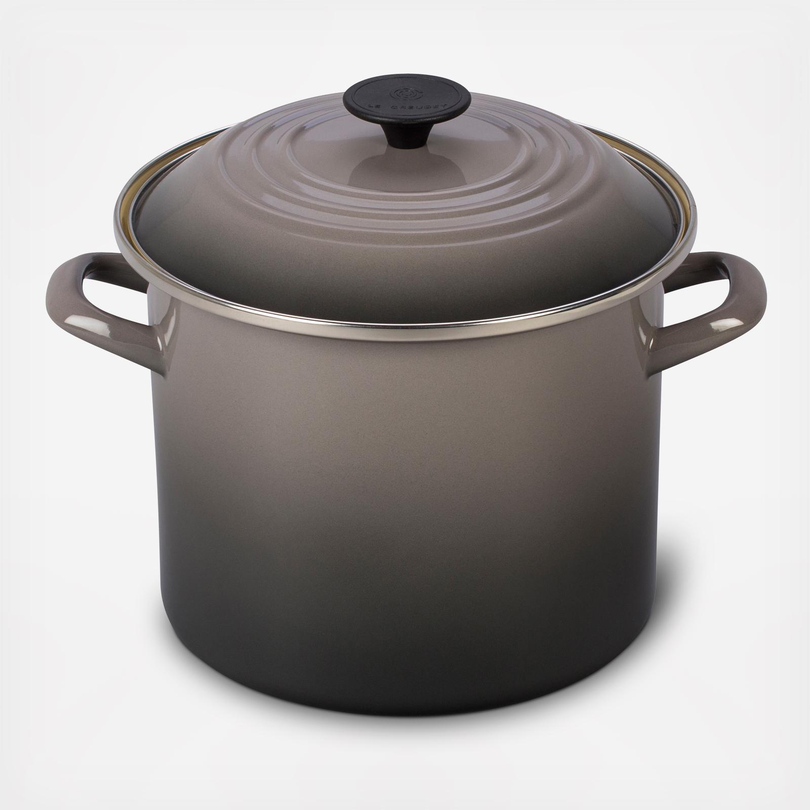 Designed to function efficiently on a full range of heat sources, enamel-on-steel stockpots are not only resistant to wear and damage, but also versatile enough for any type of stovetop, old or new. Their high-profile design limits evaporation while forcing liquids to bubble through all layers of ingredients, infusing the entire dish with flavor during cooking. Le Creuset stockpots are finished in the same bold palette of signature colors as Le Creuset enameled cast iron, making them perfectly stylish complements to any combination of cookware.