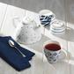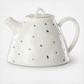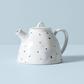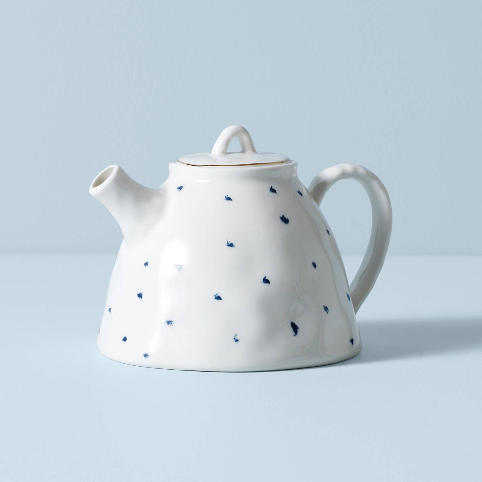 Serve your favorite freshly-brewed tea in Blue Bay teapot. Featuring a delicate dot pattern and thin gold accent around the lid, this organically-shaped teapot will look beautiful with any dessert spread.