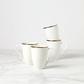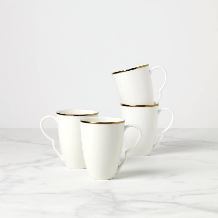 These Contempo Luxe Mugs boast a revolutionary microwave-safe gold trim around scalloped edges. Crafted from durable bone china, these dishwasher and microwave-safe mugs are excellent for formal and everyday occasions.