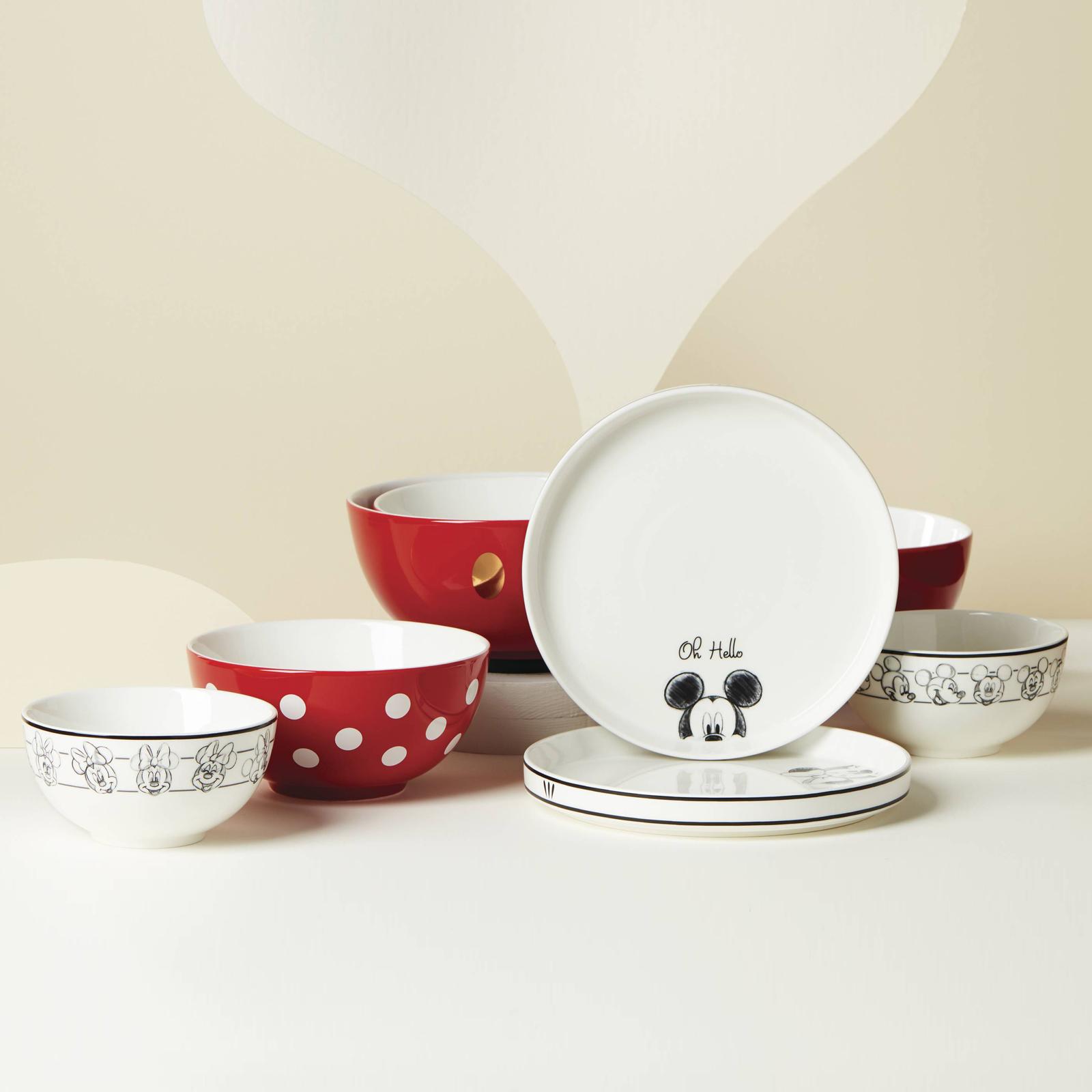 Hidden treasures are all around! Peek inside this breathtaking set of Disney dinnerware for a glimpse at the magic our nested 8-piece Luna could invite to your next family gathering! Crafted to remind you of your favorite mouse, featuring an iconic color palette and memorable design.