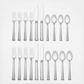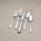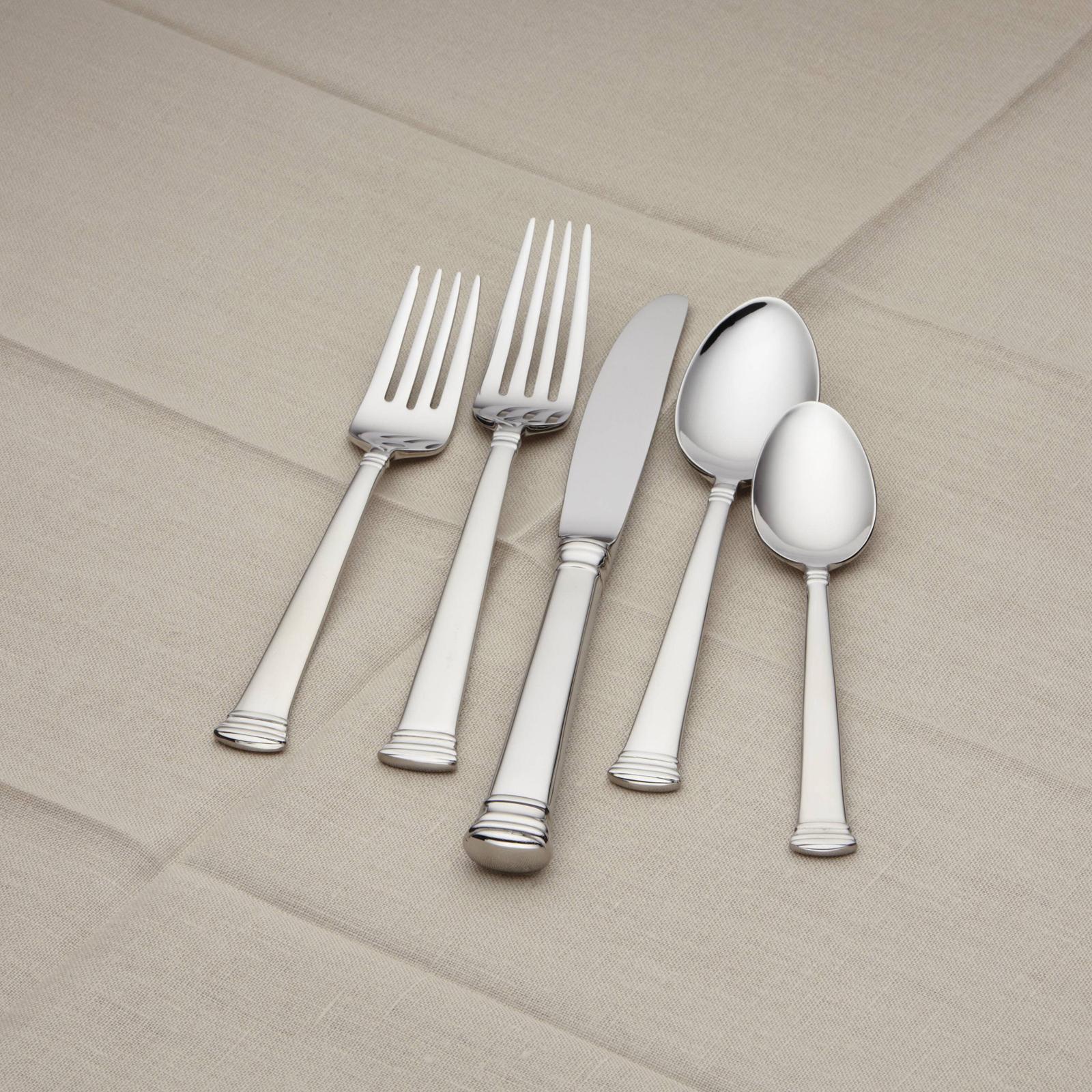 A classic addition to the table, this 20-piece flatware set, crafted of 18/10 stainless steel, features smooth, elegant lines and a subtle texture with two raised stripes on the top and bottom of the utensil handles.