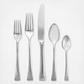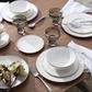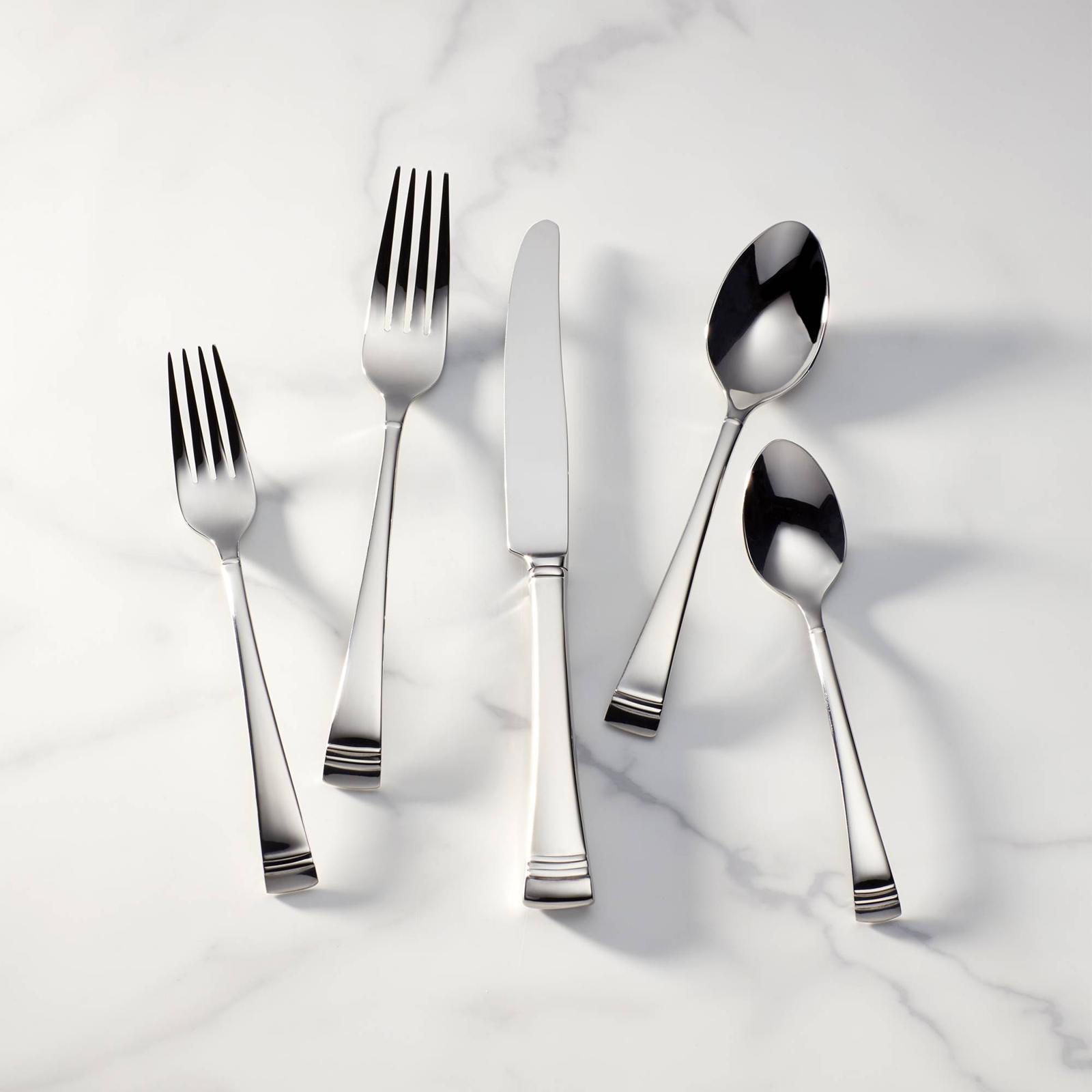 This stainless flatware set is simple and elegant, just like the dinnerware that shares its name. The handles are tapered and elegant, finished at the bottom with two small bands of gleaming platinum.