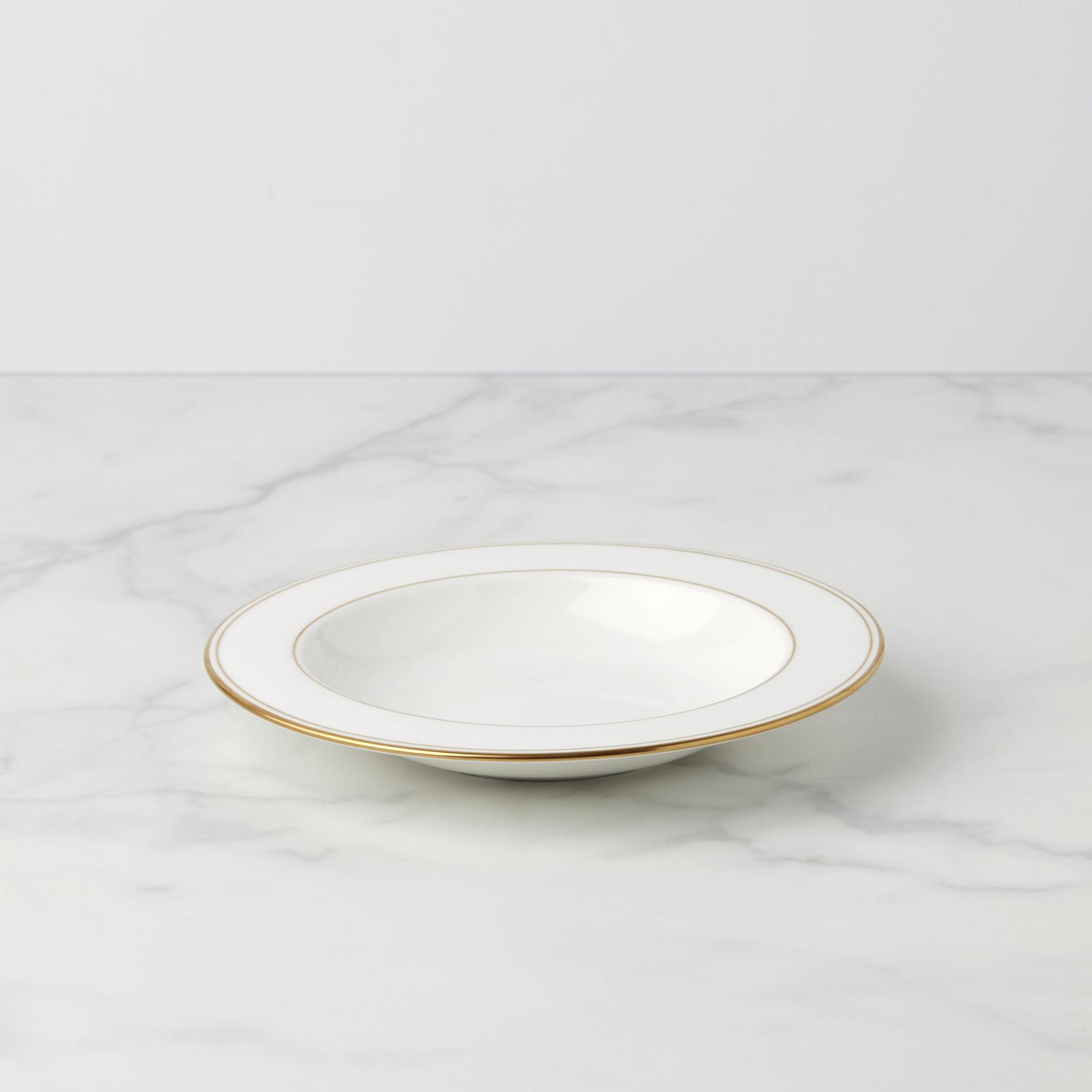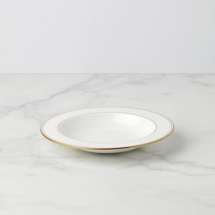 A classic pattern is rediscovered in the Federal Gold Soup Bowl with bands of shimmering 24 karat gold on white bone china radiating grace and luxury. A timeless choice, this dinnerware is perfect for every occasion.