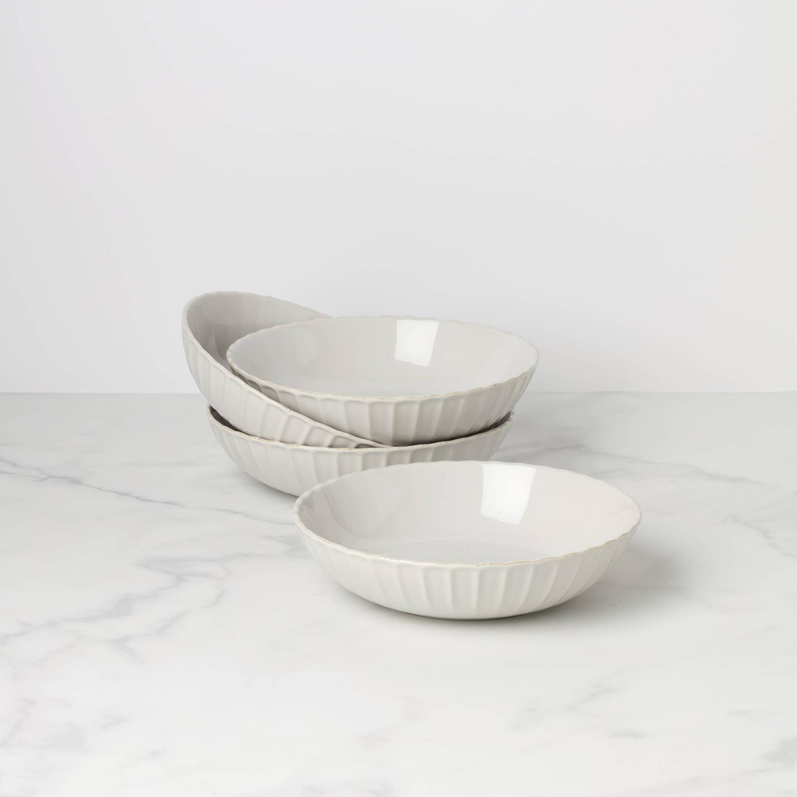 French Perle Scallop is a fresh twist on classic country look with its feminine ruffles and elegant, clean motif. Each piece has its very own scallop design accented with our signature, tea-stained rim. Mix any of these white stoneware styles with our other French Perle collections, like Classic, Groove and Bead for distinct cafe charm. Bon appetit!