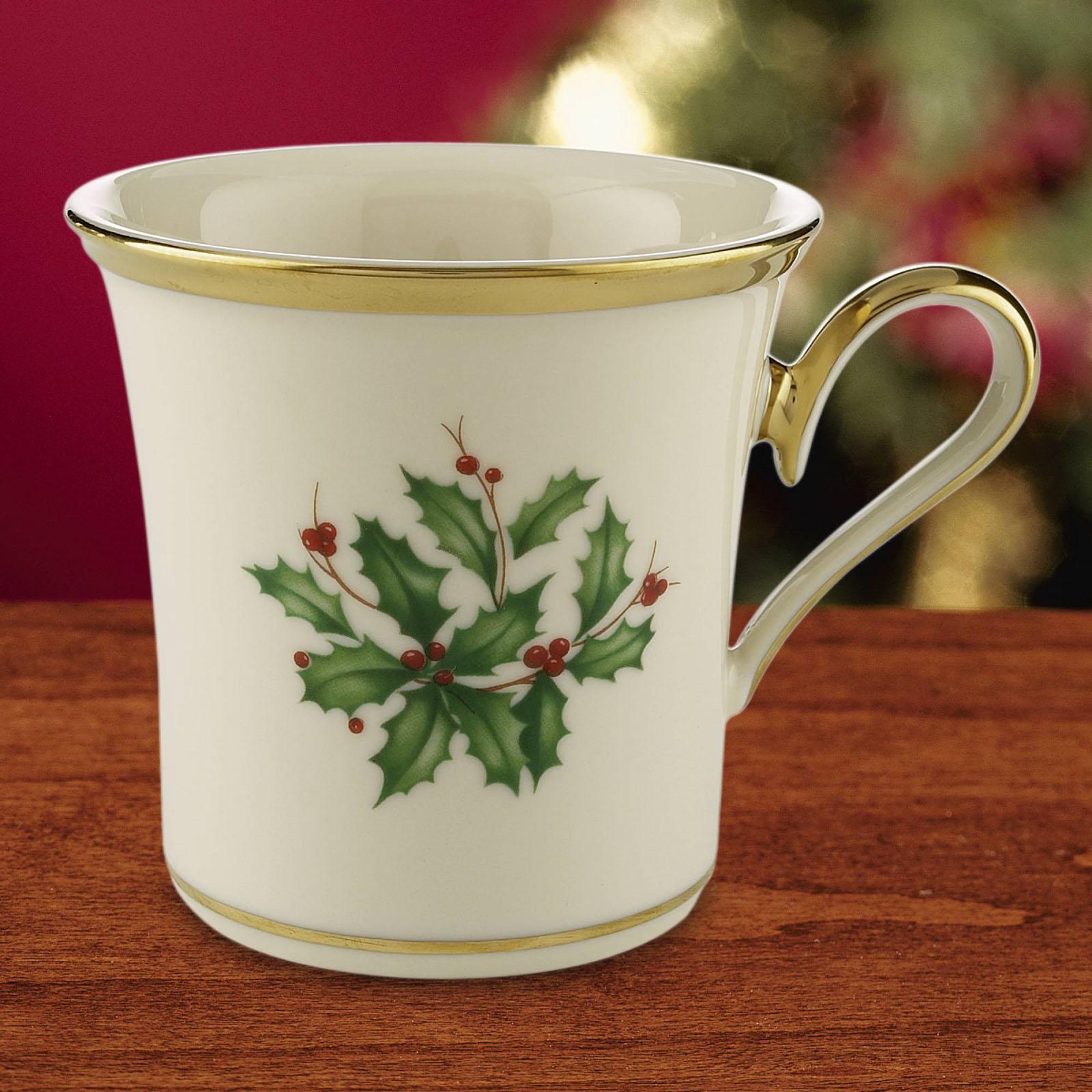 Part of the time-honored Holiday Dinnerware Collection, holly and berry motif adorns the surface of the Holiday Mug. Crafted from durable ivory bone china with rich 24-karat gold trim, for an opulent holiday themed tableware addition.
