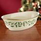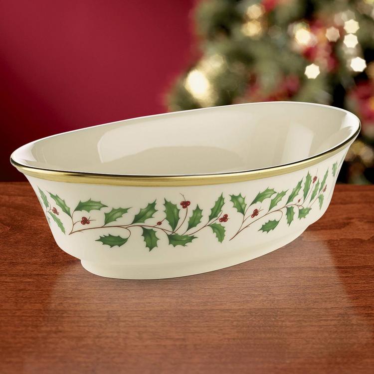 Part of the time-honored Holiday Dinnerware Collection, holly and berry motif adorns the surface of the Holiday Vegetable Bowl. Crafted from durable ivory bone china with rich 24-karat gold trim, for an opulent holiday themed tableware addition.